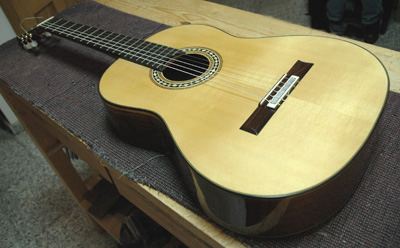 table : Epicéa (qualité 1A+) dos & éclisses : Palissandre de Rio (100 years wood ex maestro Miguel Rodriguez) diapason : 650mm. largeur au sillet de tête : 52 mm. finition : vernis au tampon / gomme laque fait main |