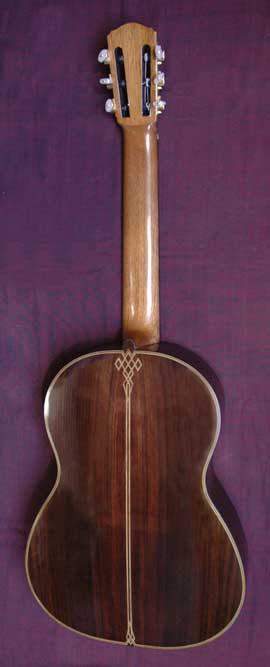 table : Epicéa dos & éclisses : Palissandre diapason : 630 mm. largeur au sillet de tête : 52 mm. finition : vernis au tampon / gomme laque fait main