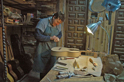 Jesús BellidoNous avons l'honneur de vous présenter ici Jesús, le fils aîné de Manuel Bellido Né en 1966, Jesús est évidement "tombé dedans quand il était petit" à l'âge de 13 ans il apprend déjà les gestes de la lutherie avec son père Manuel Jesús se consacre pleinement à son art, fidèle à la tradition et à la maîtrise familiale, il travaille dans la continuité familiale mais aussi avec une excellente connaissance de maîtrise des bois et une inventivité géniale. Tout est fait manuellement dans la tradition, inspiré bien sûr par les techniques de son père mais développant ses propres techniques, son travail est soigné, de très belles guitares dans la tradition esthétique d'Andalousie, aux sons envoûtants et expressifs Une magnifique continuité dans l'art familial des Bellido Son oncle José López Bellido, installé dans "la" rue de luthiers la plus fréquentée de Granada, qui monte d'ailleurs vers l'Alhambra, a proposé à Jesús de reprendre son atelier, mais, personnage discret, Jesús, préférant le calme est resté dans le lieu retiré de l'atelier de son père Actuellement, les prix des guitares de Jesús sont encore très abordables par rapport à la moyenne et par rapport à la qualité de son travail, seulement les délais s'allongent de plus en plus Si vous cherchez une guitare dans la pure tradition des Bellido, avec l'empreinte d'inventivité de Jesús et avec cette magie dont seule cette famille de luthiers a le secret, ne tardez pas à découvrir le travail de Jesús, luthier en passe de devenir certainement un des meilleurs de nos temps